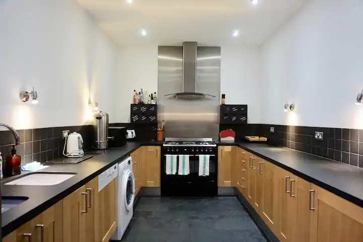 • The ground floor is an impressive 11m x 7.4m of pure social space where the kitchen and dining really is a highlight – easily enough room for a few people to share the cooking with all mod cons, two fridges with filtered water & ice maker and plenty of chefs pans, utensils, and a drawer of seasonings to help yourself too.