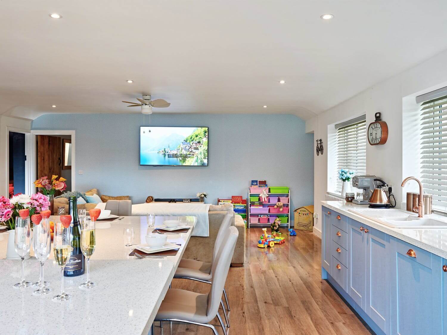 Sleeping 16, Somerset Retreat is bright, modern, colourful, pretty. It’s a place of infinite happiness nestled in the shadow of the Quantocks. If it were human, it’d be Keira Knightley in odd socks. This is an Instagram-ready holiday home. But it’s also bursting with fun: there are toys at every turn.